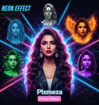 Add a bold, electric vibe to your photos with PixMezaβs Vibrant Neon Effect.